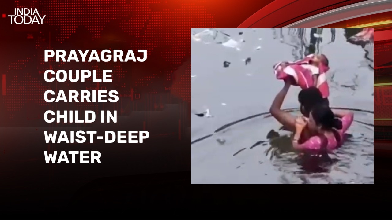 **Meta Description:** Parents in Prayagraj bravely carry their infant through flooded streets, highlighting the challenges faced during severe weather conditions.